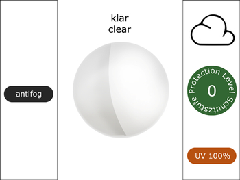 Der Filter clear (antifog) der Schutzstufe 0 ist klar (ohne Tönung) getönt und mit einer antifog Beschichtung (Beschlag reduzierende Wirkung) ausgestattet.| Filtereigenschaften: | antifog |